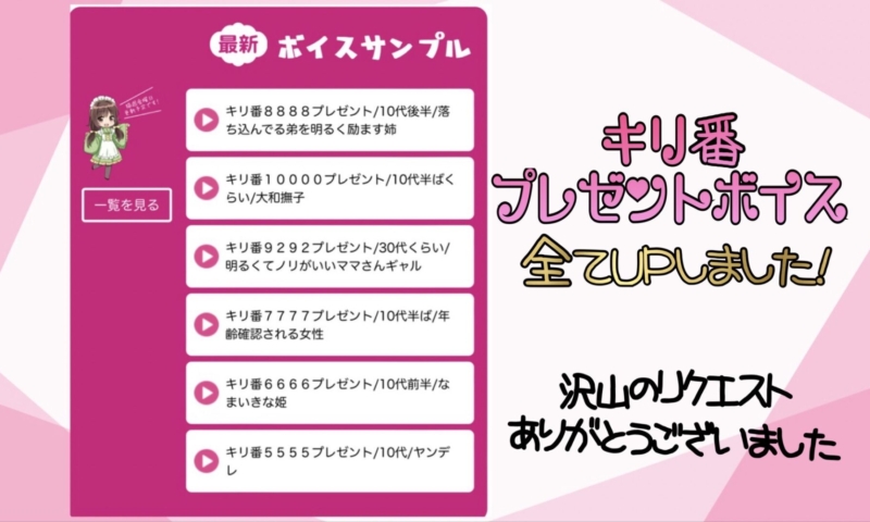 お仕事のご依頼や問い合わせ・最新ボイスサンプルの他…出演作品・YouTube配信の最新情報・応援ページ等随所更新中。